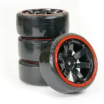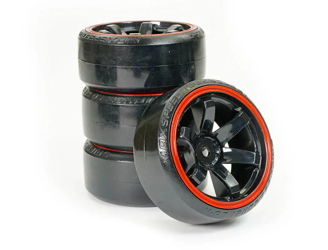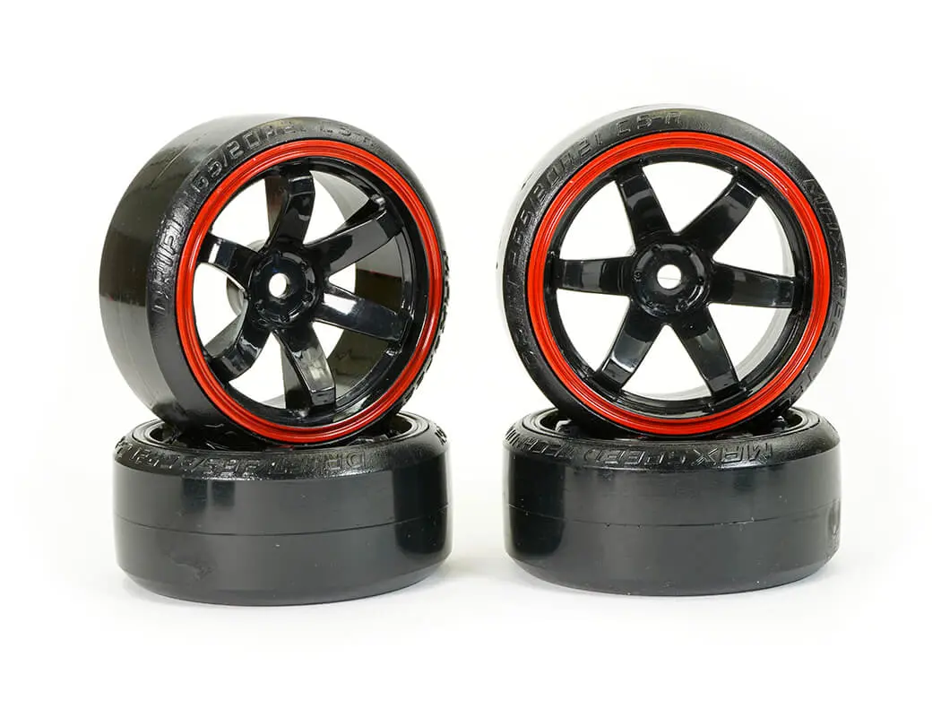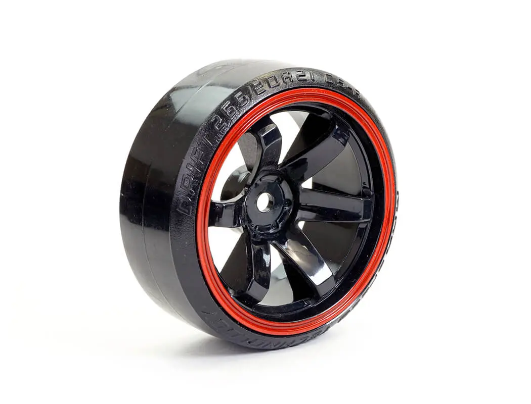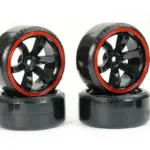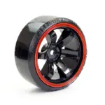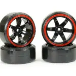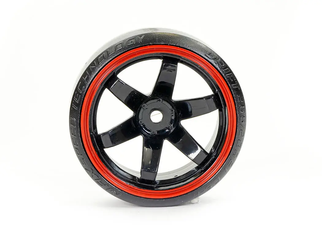 FASTRAX 1/10 STREET/DRIFT TYRE 6-SPOKE WHEEL (6MM OFFSET) – BLACK WITH RED TRIM