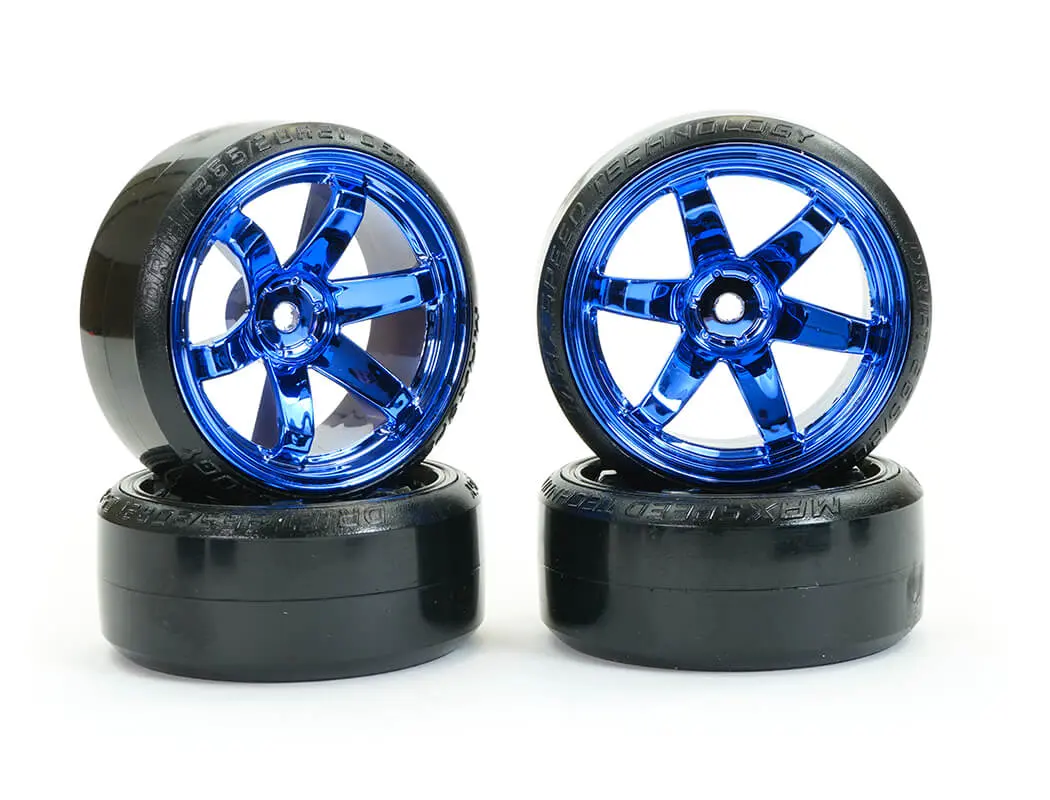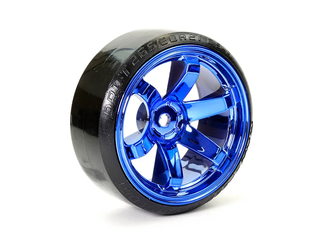 FASTRAX 1/10 STREET/DRIFT TYRE 6-SPOKE WHEEL (6MM OFFSET) – BLUE CHROME
