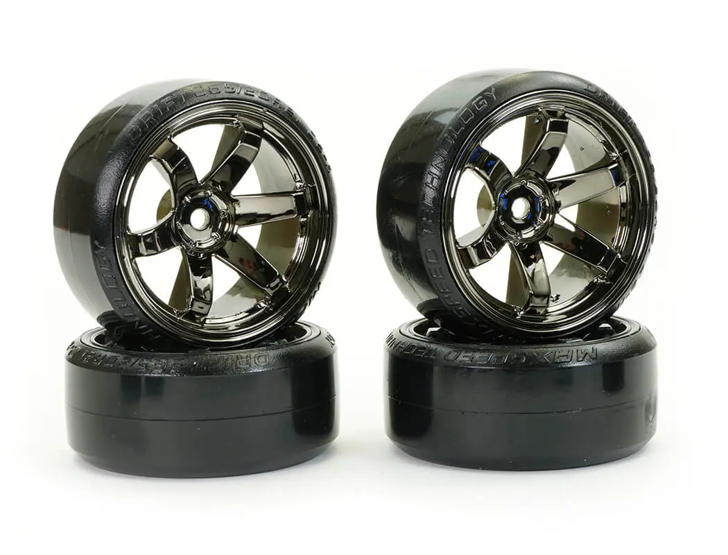FASTRAX 1/10 STREET/DRIFT TYRE 6-SPOKE WHEEL (6MM OFFSET) – GREY CHROME