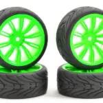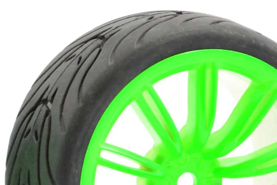 FASTRAX 1/10 STREET/TREAD TYRE 20SP GREEN WHEEL