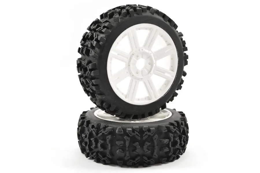 Suitable for all 1/8 off road buggy applications with 17mm hex adaptors. Available in white, black and black chrome. Sold as pair.