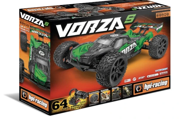 Under the body, each new Vorza truggy has a ton of great durability and tuning features that make each one a joy to drive with a clear upgrade path to the ”S” spec and beyond! The Vorza takes the race-winning design and mixes it up with HPI FLUX tech to give you awe-inspiring speed! This is a ready to run (RTR) truggy that you can take to BMX jumps for hair-raising big-air thrills, and then you can take it straight to any track for top-level racing action – it will turn heads and amaze your friends!