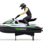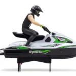 PVC (soft vinyl) rider figure wearing helmet and wet suit is mounted on the pre-painted factory-assembled vacuum molded ABS hull, complete with decals attached to recreate the atmosphere of a real water bike. ※Rider figure is not movable.