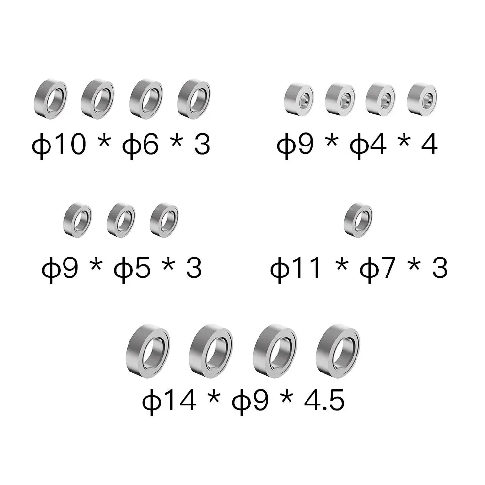 Replacement bearing set including various sized bearings to fit the Rlaarlo ROG1 and X12S. Part number R16061.
