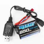 - 850mAh Li-Ion 7.4V 2-cell battery and charger