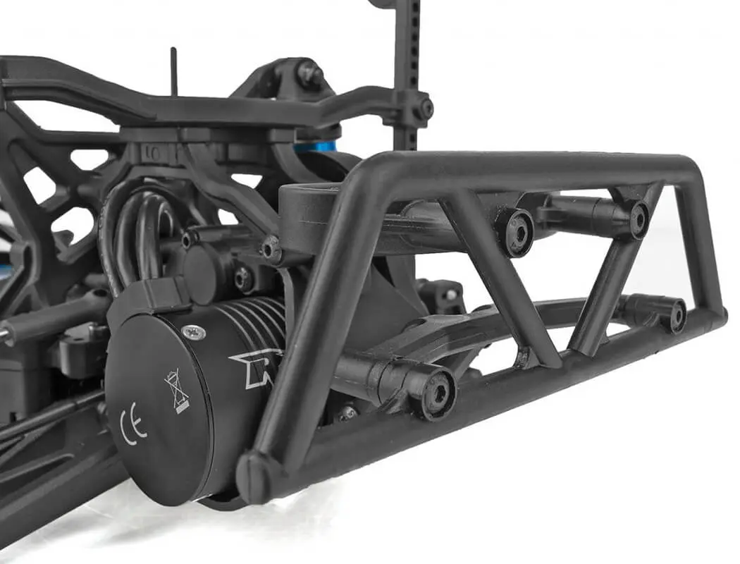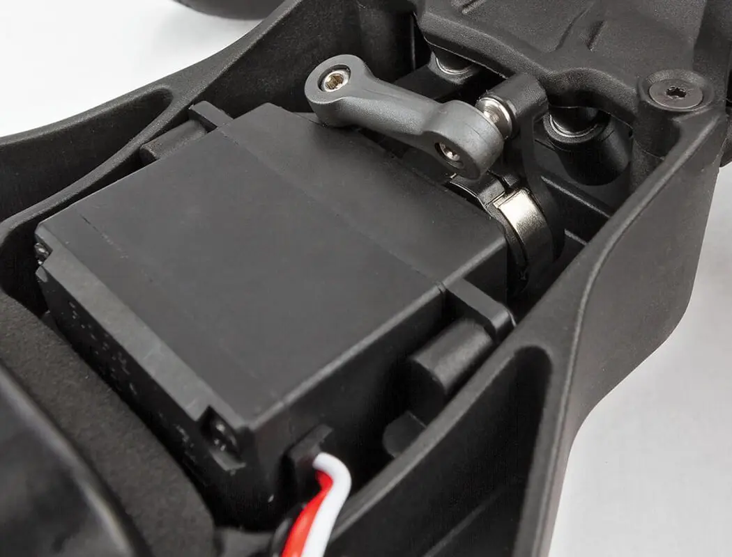 - Low center-of-gravity molded composite chassis with hook-and-loop battery straps that accommodate both NiMH and 2S or 3S LiPo battery packs