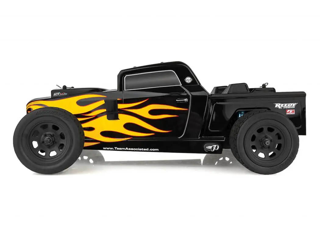 The passion for these rods still lives today and Team Associated pays tribute to the genre with the Pro2 RT10SW rat rod, which is based on the 9-time ROAR Short Course National Championship-winning trucks, featuring a water-resistant high-power Reedy brushless speed control and 3300kV brushless motor, a 2.4GHz 2-channel radio system as well as our DVC (Dynamic Vehicle Control) receiver unit with built-in adjustable digital gyro. Add to that a Reedy metal-gear digital high-torque servo and a water-resistant enclosed receiver box–all of this packaged together in an outstanding factory-finished body. The RT10SW beast will keep you cornering with the included high-grip all-terrain tires and lightweight wheels.