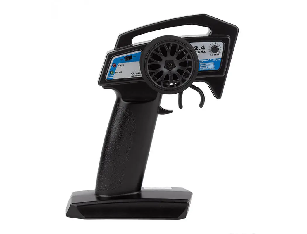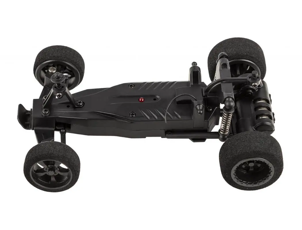 No need to prep or build your racer; just charge it and you’re ready to drive! The included 2.4GHz transmitter allows complete control, enabling you to navigate around, through and over obstacles with ease! Race-inspired wheels and body make for a great-looking package that will also perform well on the staggered-size foam tyres.