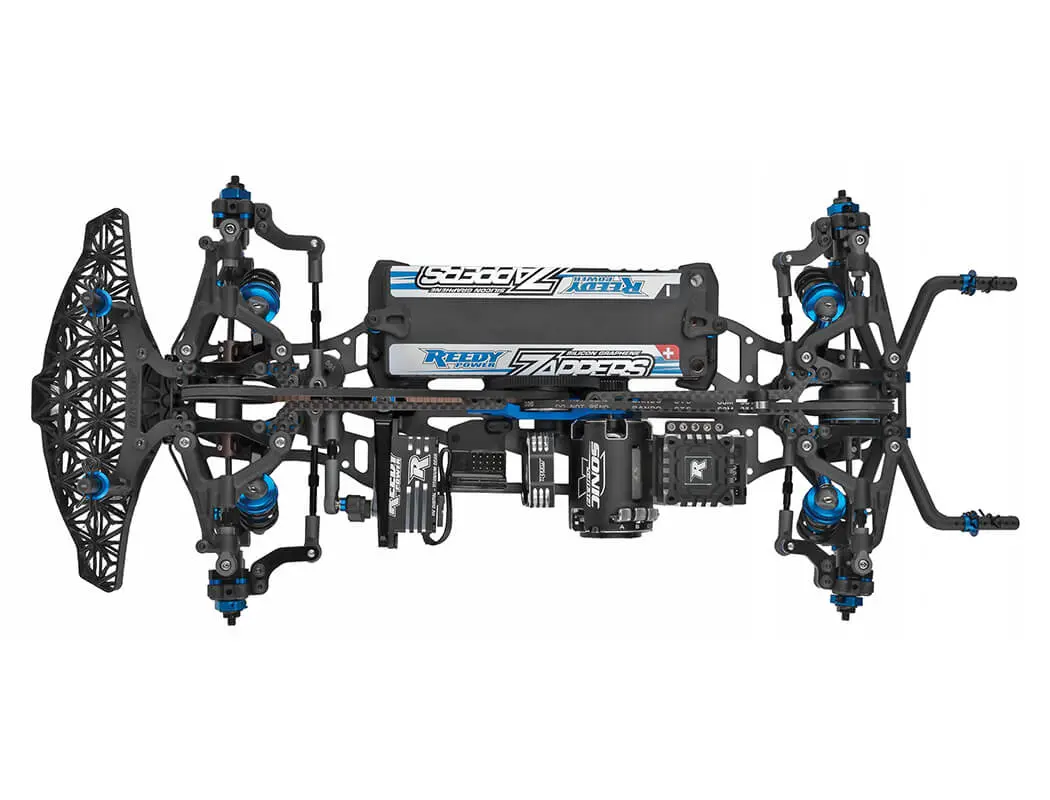 Please Note: Vehicle shown equipped with items NOT included in kit: Body, Reedy motor, battery, ESC, servo, receiver, wheels, tyres, body, and pinion gear. Assembly and painting required.