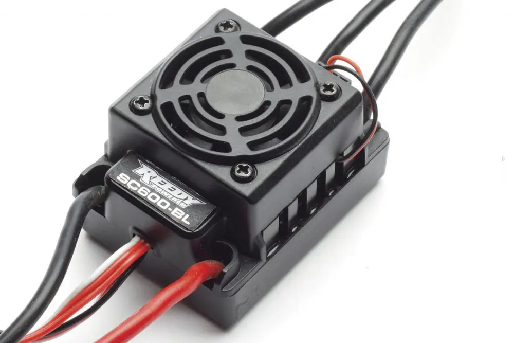 - Water-resistant high-power Reedy brushless speed control with T-plug connector and LiPo low voltage cutoff
