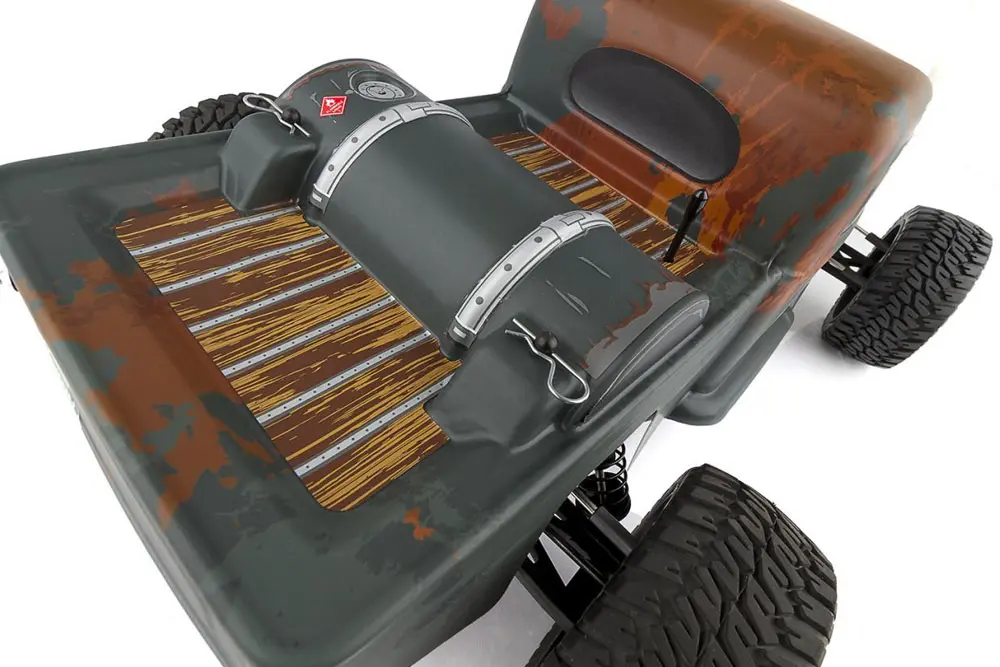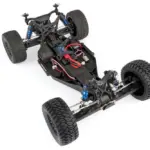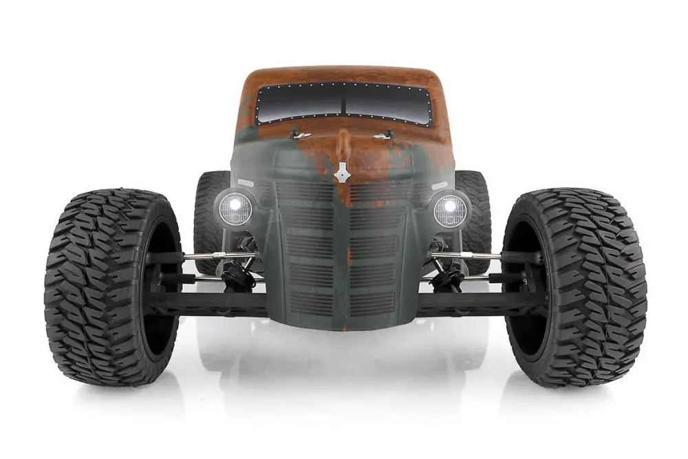 The suspension also received an upgrade with the addition of adjustable blue anodized aluminum V2 12mm big bore coil-over shocks. The gearbox now comes with a heavy-duty sealed-gear differential and externally adjustable V2 slipper clutch. 81mm CVA driveshafts increase traction and chassis support. Hex-drive wheels come standard on the Trophy Rat with realistic off road wheels and tires to keep the truck gripping the ground.